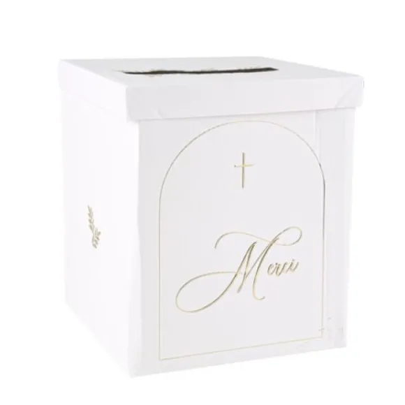 Somptueuse L’Urne Merci Pureté Blanche Et Or, Une Urne A Enveloppe Originale Et Tendance Qui Vous Plaira Certainement Lors De Votre Communion