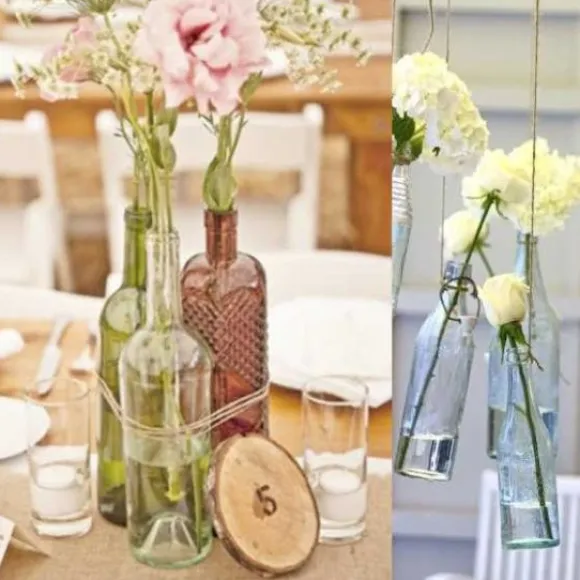 Vase Bouteille Carrée 15Cm : Coup De Coeur Sur Ce Vase Original En Forme De Bouteille Carré , Vous Pourrez Le Disposez Comme Centre De Table Ou Bien Le Suspendre Dans Votre Salle De Cérémonie A L’Aide D’Une Corde Naturelle Par Exemple : Idéal Pour Un Theme Vintage, Jute , Naturel Ou Mer